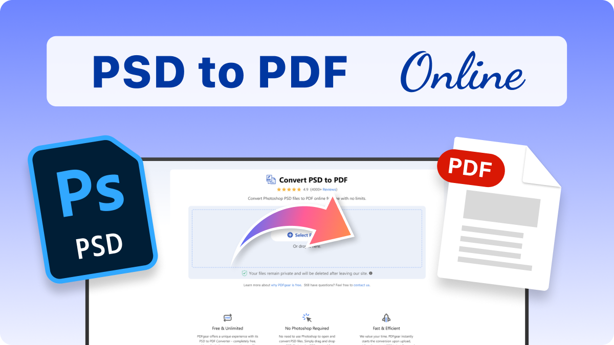 You can use PDFgear's online tool to convert your PSD files to PDF format without losing image quality. Most importantly, you don't need to install Photoshop on your computer, saving you time and effort.