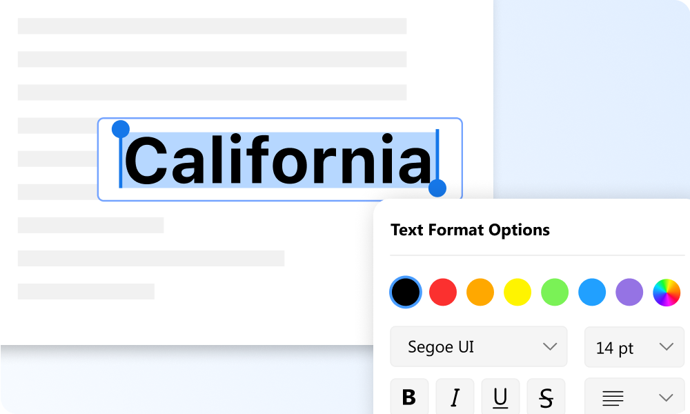 With PDFgear PDF editor, you get to freely select and edit PDF text with the same font, text formatting won’t change after the editing. On the other hand, extensive font options are also offered if you want to make changes.