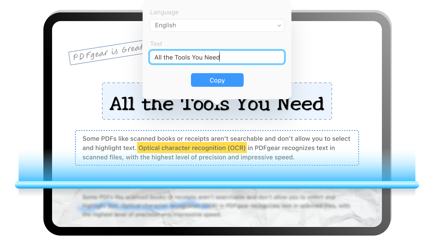 In the PDF landscape, the OCR (Optical Character Recognition) is primarily used to make scanned PDFs editable or extract text from unselectable documents. Given the technical threshold, the OCR feature is usually behind a paywall in most PDF editor software like Adobe Acrobat. But now, PDFgear brings the OCR feature to worldwide users for free.